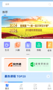 国家开放大学终身教育平台的老年频道为老年人提供了大量的健康课程,包含有老年保健、老年书法、中老年健体瑜伽、中老年迪斯科等。